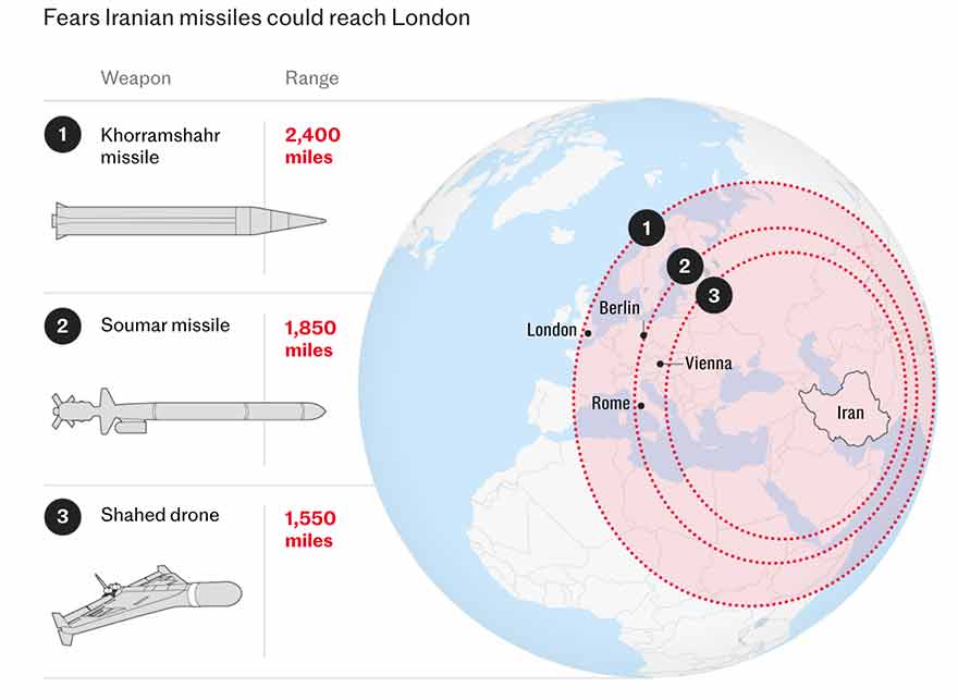 Les experts militaires relèvent avec inquiétude que ces nouveaux missiles iraniens pourraient désormais frapper les pays d’Europe de l’Ouest puisque :